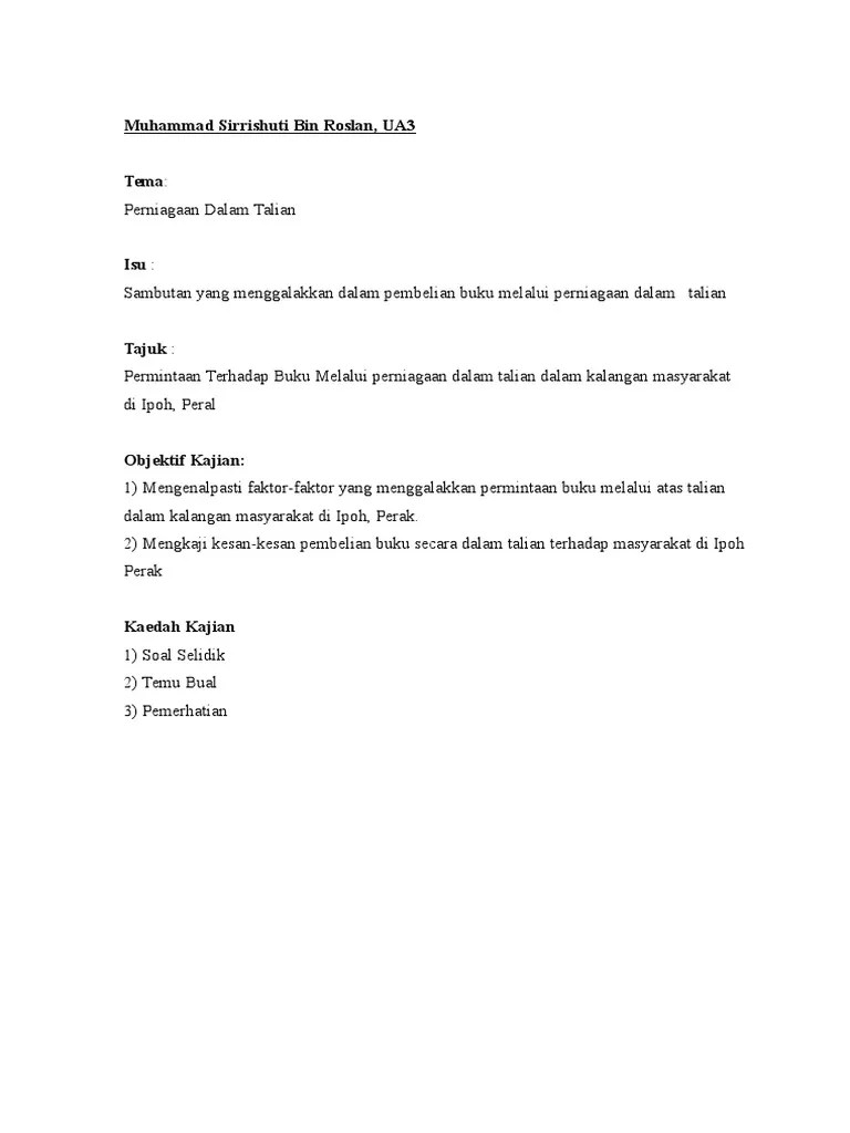 Kajian dijalankan berhubung kecenderungan pelajar dalam menjalankan perniagaan atas talian, dimana ianya banyak menimbulkan kesan positif di kalangan pelajar.