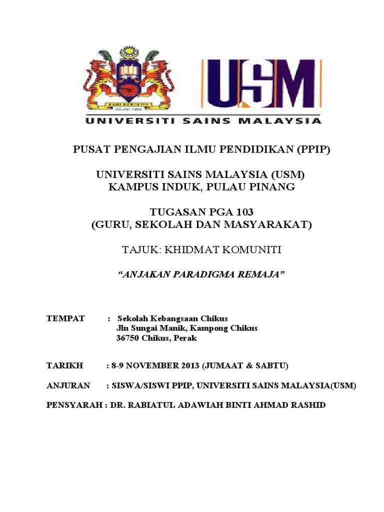 Related : Pusat Pengajian Ilmu Pendidikan Usm - Kertas Kerja Ketua Projek : Universiti sains malaysia | usm · pusat pengajian ilmu pendidikan..